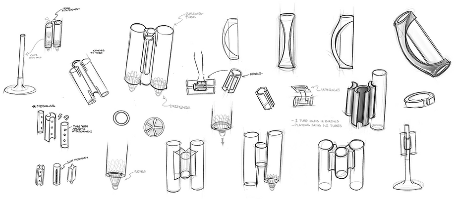 The final design is a dual tube birdie organizer that attaches to the net pole and separates new shuttlecocks from used ones. By creating a clear system during games, to reduce clutter on the sidelines and allows players to stay focused without interrupting the flow of play.